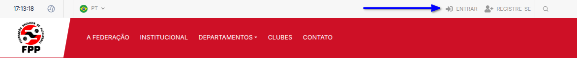 No site da entidade, clique em Entrar, localizado no canto superior direito da tela.