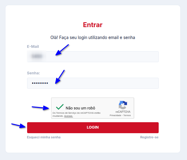 - No campo E-mail: informe seu e-mail ou ID